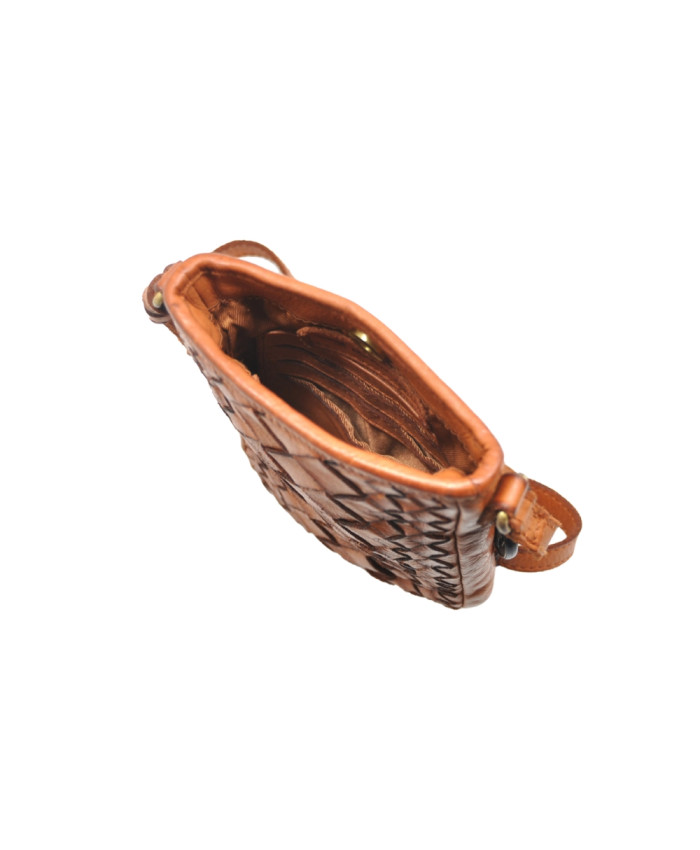 Bolsa Tiracolo em Pele de bovino lavada, que lhe transmite o “look vintage” que destaca a genuinidade da mesma, valorizada ainda pelo efeito entrançado na pele.