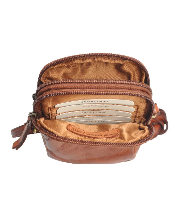 Bolsa Tiracolo em Pele de bovino lavada, que lhe transmite o “look vintage” que destaca a genuinidade da mesma, valorizada ainda pelo efeito entrançado na pele.